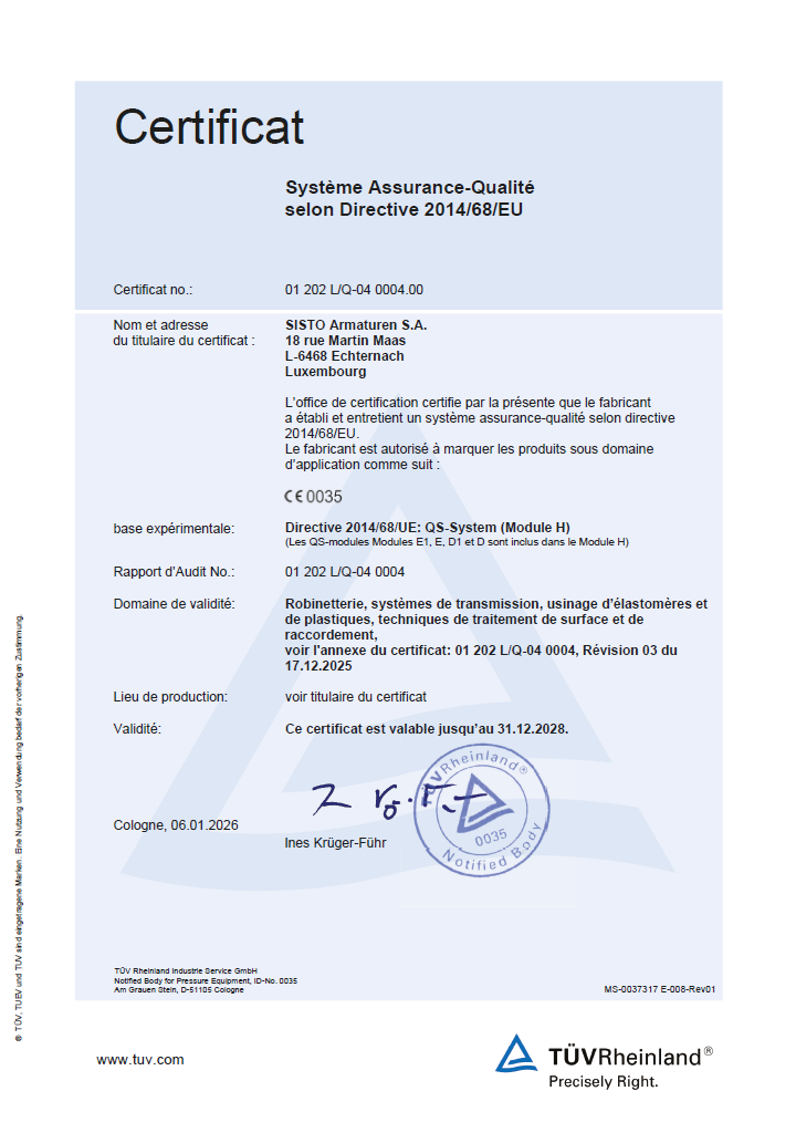 QS acc. PED 2014/68/EU (module H)